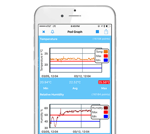 В процессе использования мобильное приложение позволяет пользователям просматривать все терморегистраторы на расстоянии до 30 метров (100 футов) в реальном времени, текущие значения температуры и уведомления о нарушении температуры.