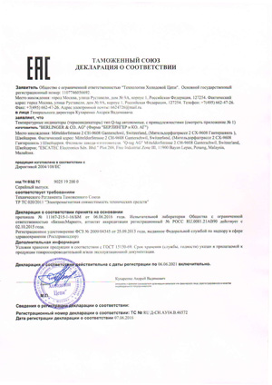 Термоиндикаторы производства Berlinger & CO. AG зарегистрированы в Росздравнадзоре РФ в качестве медицинских изделий, сертифицированы по системе ГОСТ-Р, поставляются с сертификатом о поверке и калибровке (по международной системе NIST)