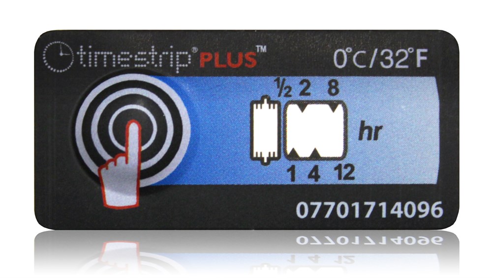 Timestrip® PLUS™ инертен с белыми окнами перед активацией.