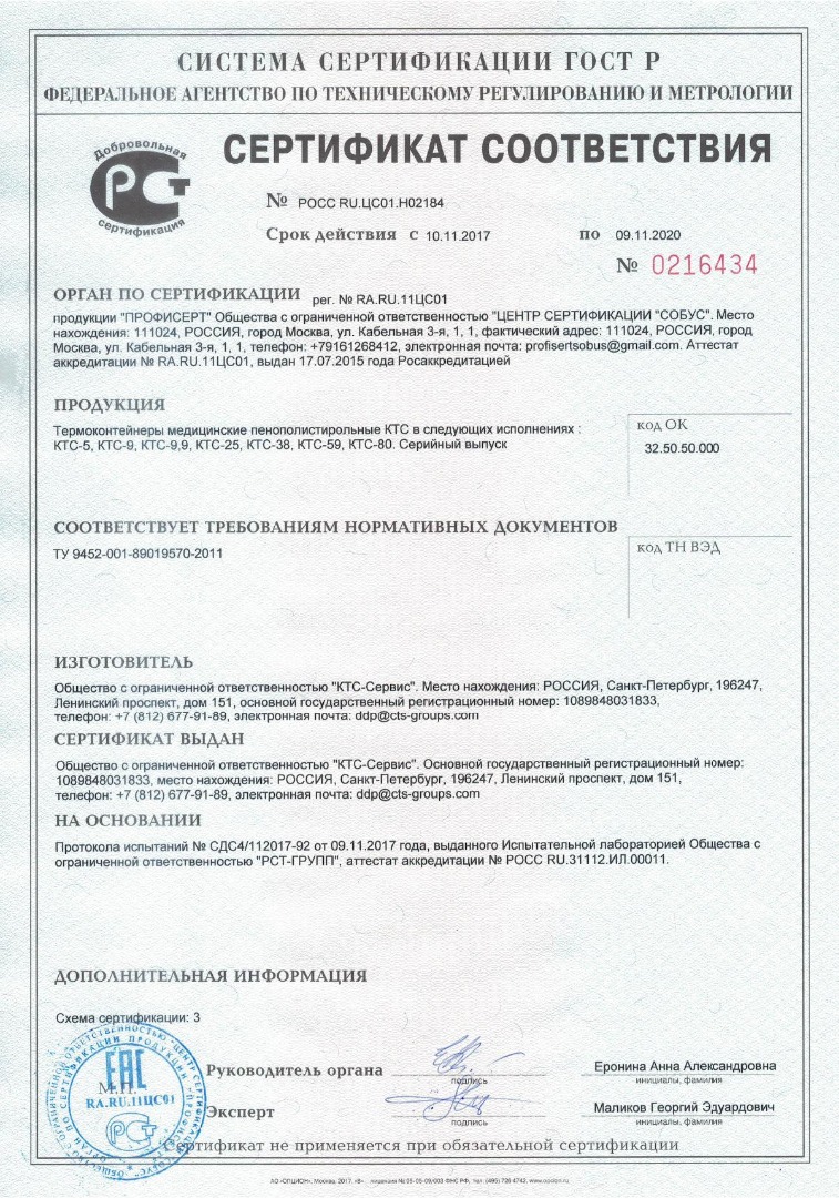 Сертификат соответствия: № РОСС RU.MH08.H16895 Срок действия: до