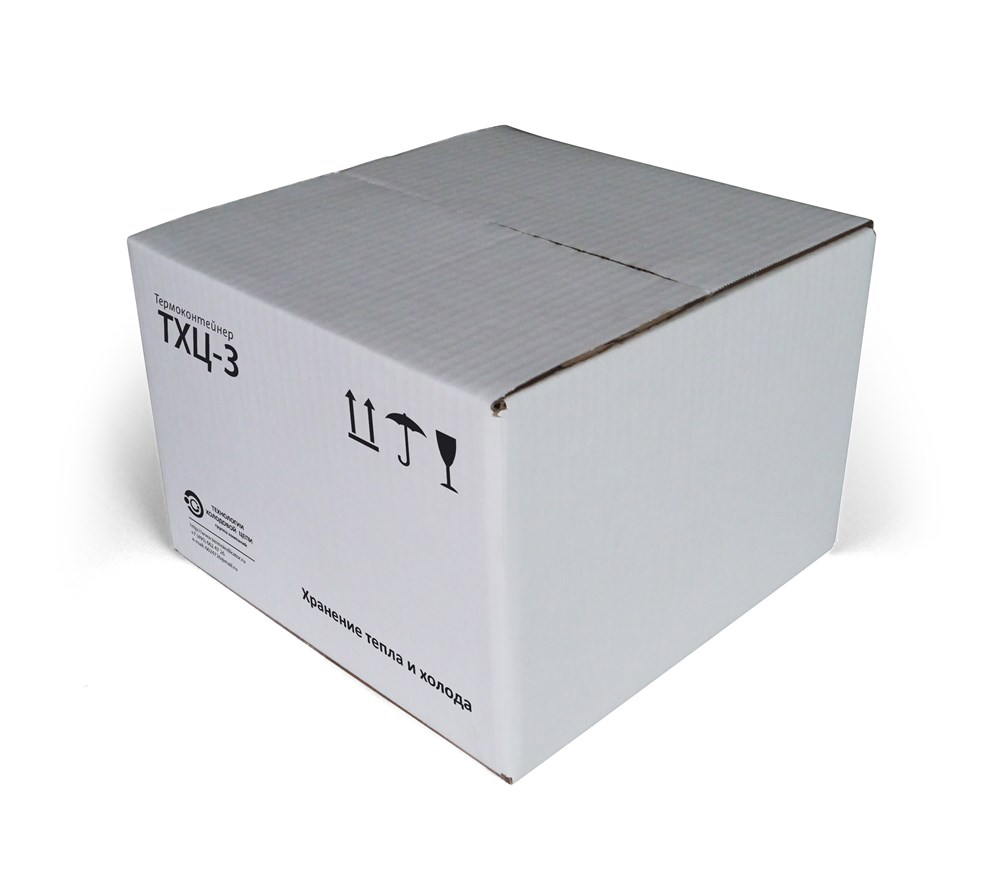 Конструкция: Основная термоизоляционная часть термоконтейнеров серии ТХЦ изготовлена из пенополиуретана в коробе из гофрокартона, и образует единое целое. Внутренний объем отделен от пенополиуретана коробом из картона, либо, по желанию заказчика, пластиковым коробом. Сверху короб закрыт пенополиуретановой крышкой с покрытием из картона. Пенополиуретан обладает более высокими теплоизолирующими свойствами и механической прочностью по сравнению с пенопластом, поэтому данные термоконтейнеры получаются более компактными при одинаковом внутреннем объеме и изолирующих свойствах. Толщина теплоизоляции составляет минимум 25 мм (зависит от модели). Это позволяет надёжно защитить содержимое от неблагоприятного воздействия окружающей среды. Для поддержания температурного режима внутри термоконтейнера могут использоваться аккумуляторы холода (хладоэлементы), лёд, сухой лёд.