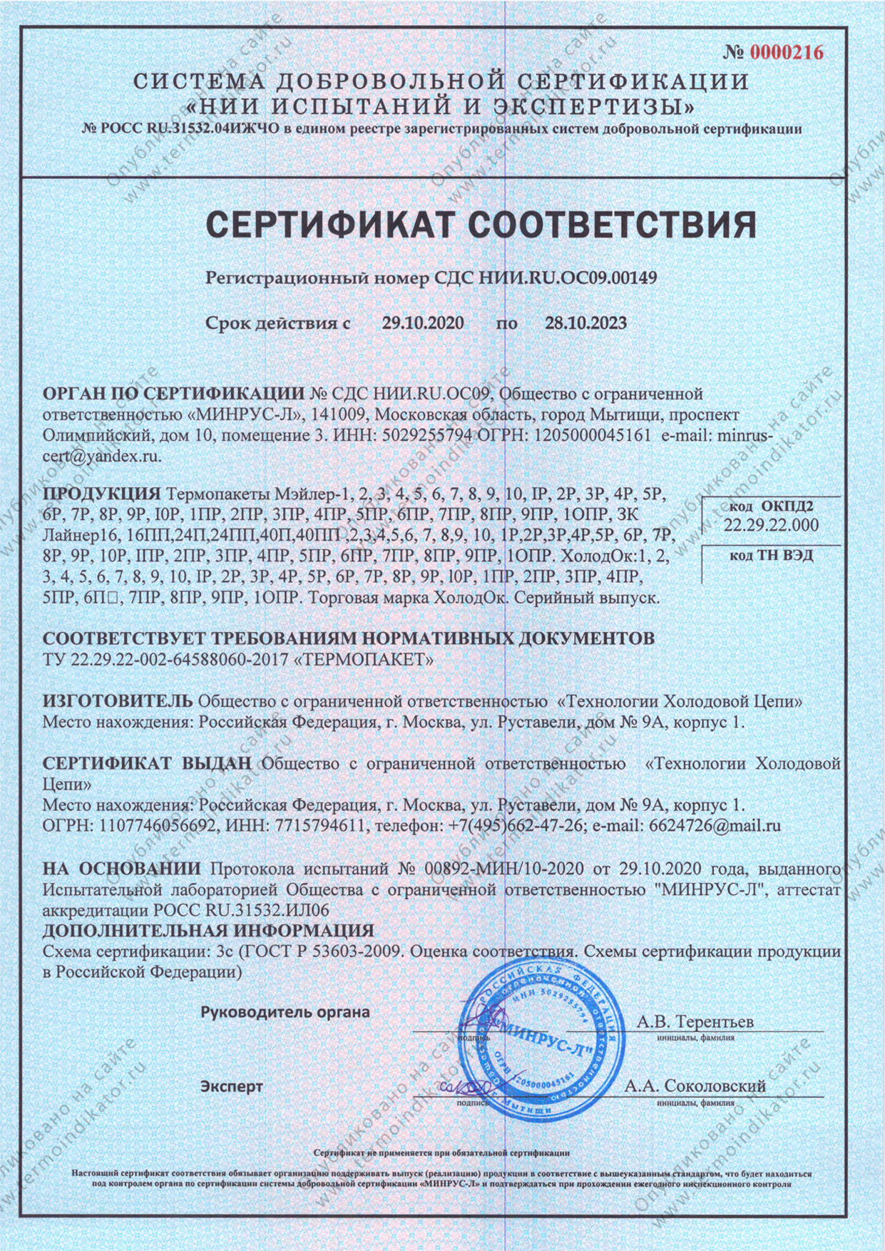 ТипТермопакет с возможностью использоваться повторно