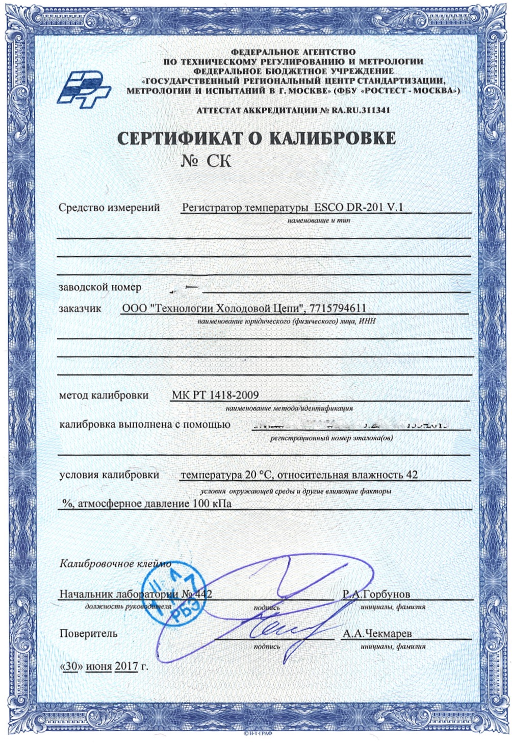 - сертификат Росстеста к каждому регистратору